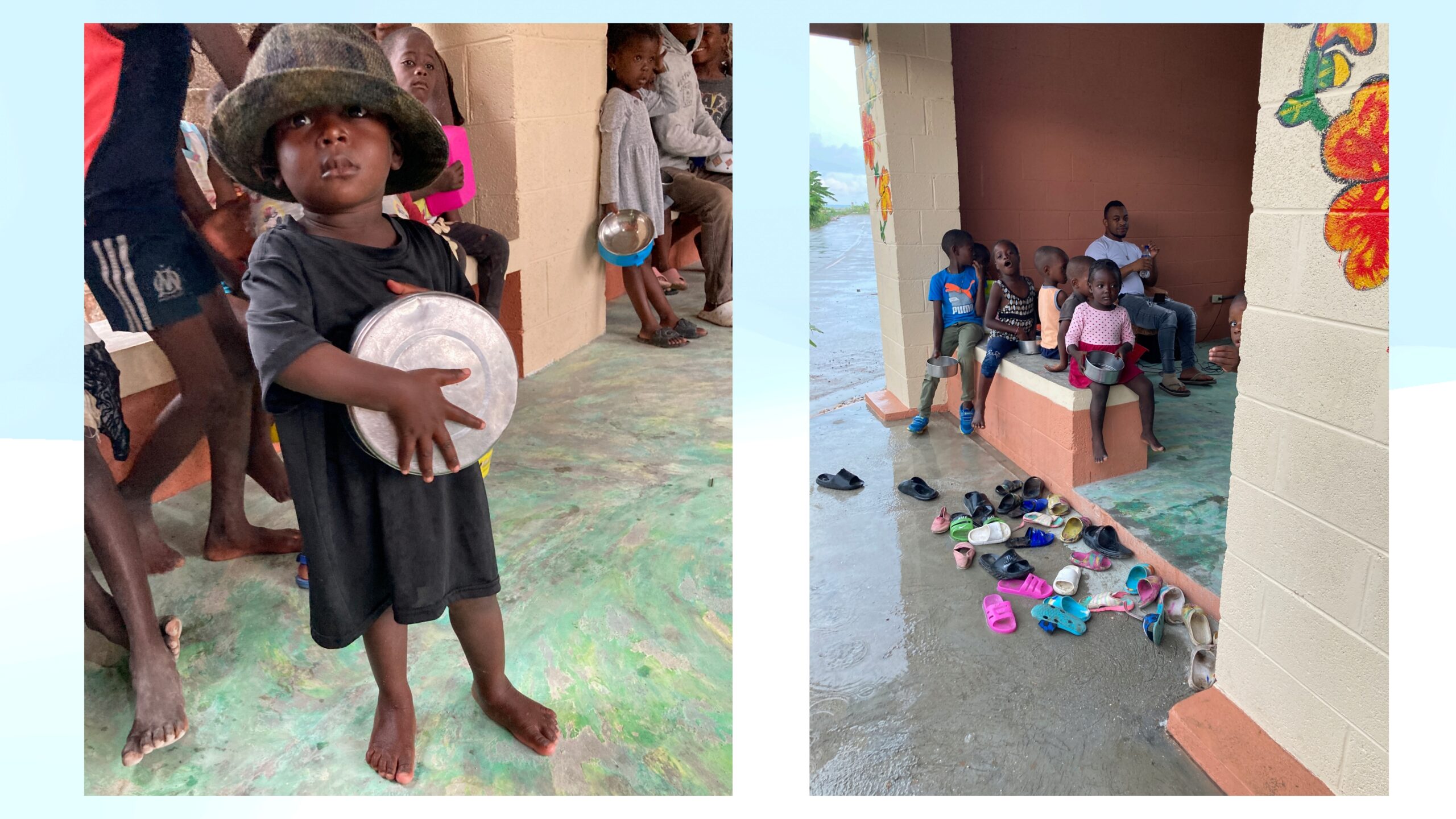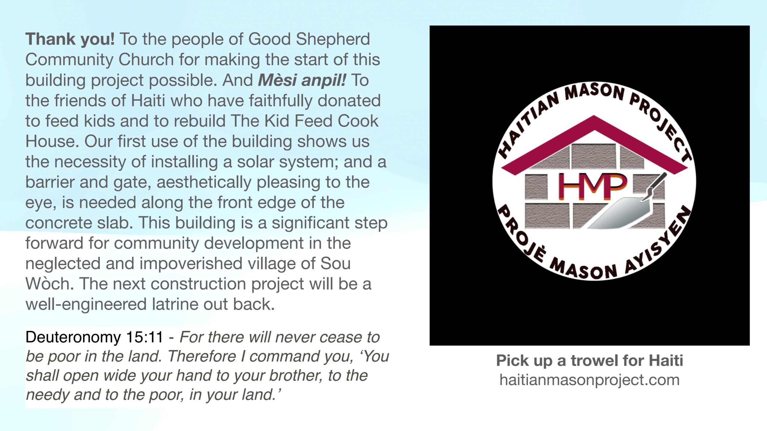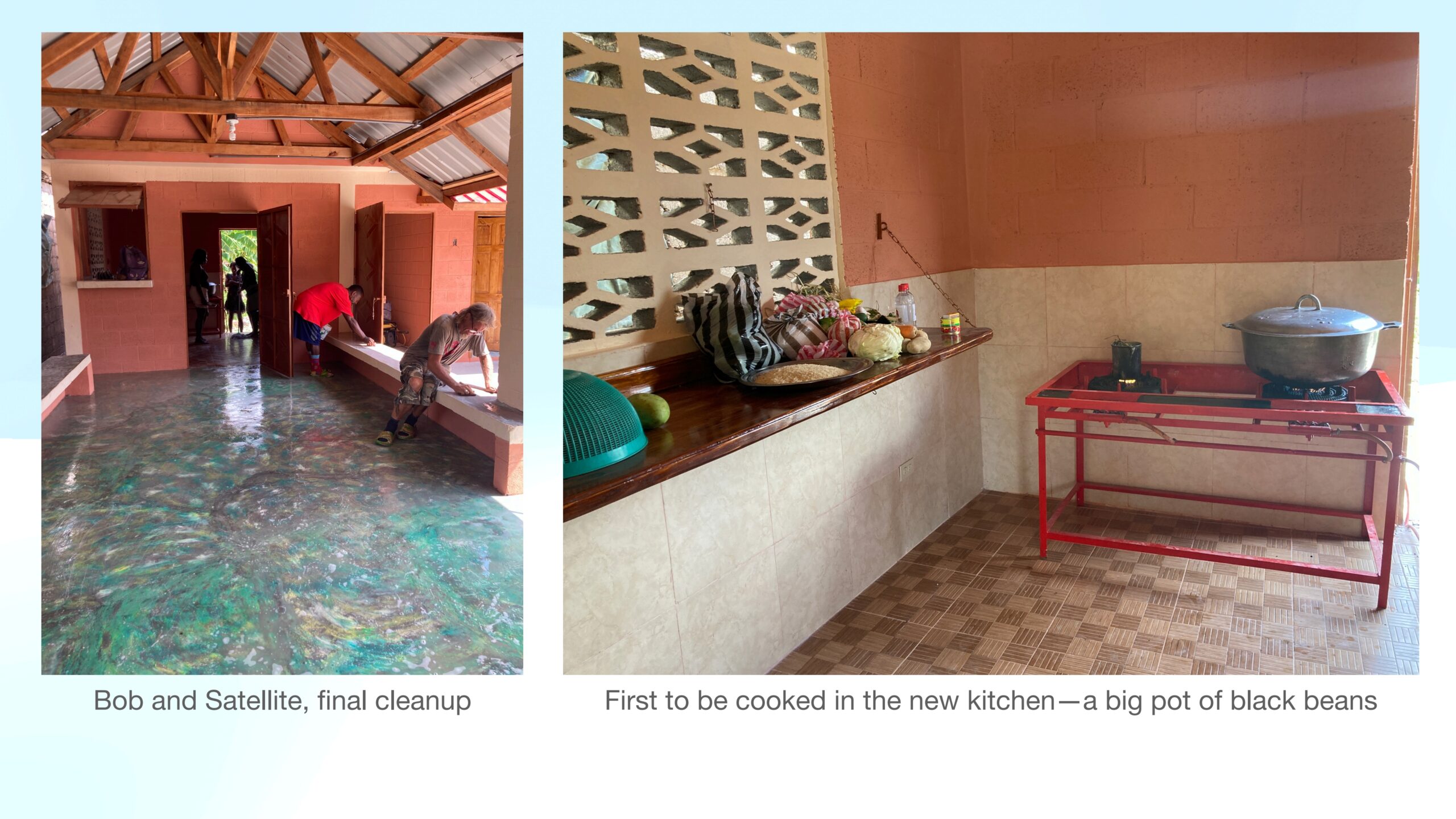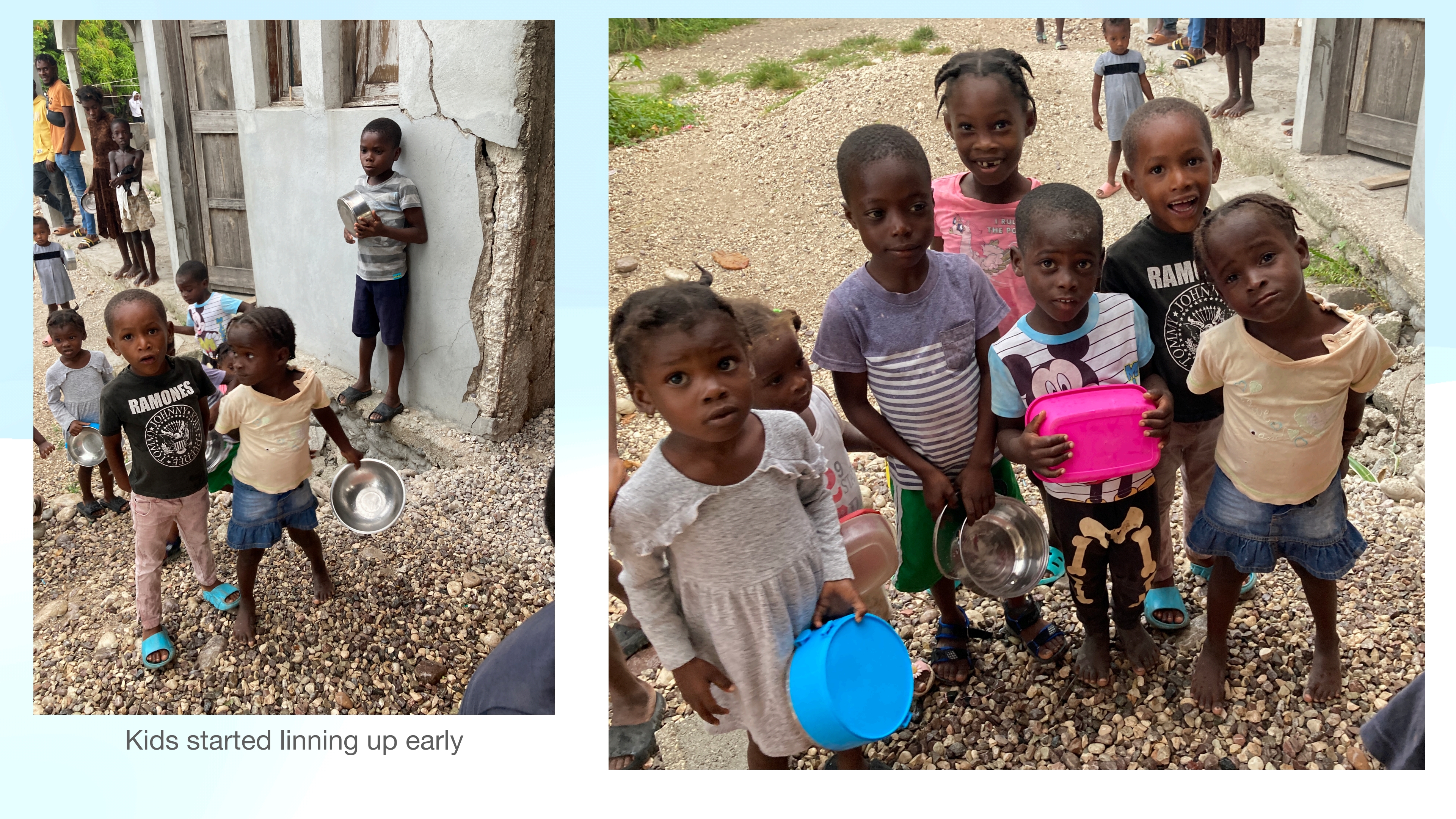 I remember watching the TV series Rin Tin Tin back when I was a lad. I don’t remember much, except that many episodes ended with the sound of the bugle and the cavalry galloping in just in time to save the day. I think I had a naive expectation that an intervening international force could charge into Port-au- Prince, eliminate the gangs and open the streets and highways so that needed fuel, food, and medicine could be delivered. It doesn’t appear that anything like that will happen. It’s all too complicated. No one can predict when schools will be able to reopen. In a conversation with the provost of AUC yesterday, I said it is a tragedy for students to be out of school so long, then the provost said that it is a catastrophe. I am heartsick seeing what is happening in Haiti. But we were able to do a Kid Feed in Sou Wòch yesterday. My mason-crew boss has been learning how to use a design tool on his laptop, and he came up with this rendering with input from Hertha, me and others. He figures that the total cost for demolition and rebuilding the old house of Madam Elvie will be around $ 30,000.00 (Cook House Project). The expanded kitchen could then be used for more than Kid Feed and be a benefit to the community. After buying what we needed for yesterday’s Kid Feed, Hertha told me that prices were still going up and the availability of food was going down—less food for higher price. For many Haitians, the situation is grim and approaching dire. Again, a big THANK YOU! to those of you who are contributing to Kid Feed.